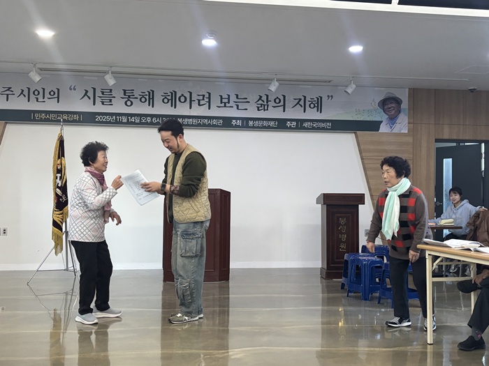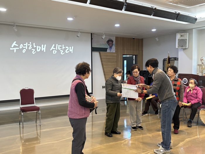 2025년의 마지막 민요교실 수업입니다! "해주아리랑, 신사철가, 난감하네, 들국화, 지경다짐" 5곡 복습해봤는데요! 오늘따라 어르신들의 집중력이 매우 높습니다! 12월에 수업이 없어 무척 아쉽지만, 2026년 새해에 신나는 마음으로 만나요!