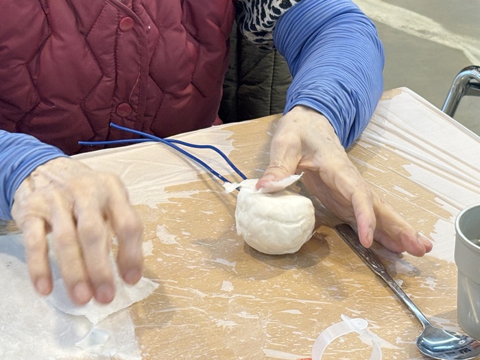 인형의 머리를 만들어볼까요! 한지를 한 겹 한 겹 떼어 동글동글한 두상을 만들어보기! 꼼꼼히 붙이지 않고 사이에 공간이 생기면 말렸을 때 모양이 쭈굴쭈굴해지고 곰팡이도 생겨요! 중간중간 꼭꼭 눌려주세요! 건조기에 까슬까슬 잘 말려놓을게요 ~~