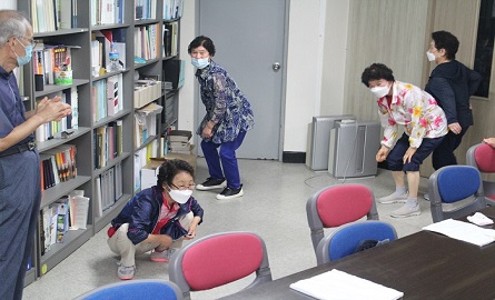 가볍게 몸을 풀어주며 수업을 시작해보았습니다! 지난시간 배웠던 왈츠 기억하시나요?노래에 맞춰 왈츠를 복습해보며 좀 더 심화된 동작을 배워보았습니다! 짝꿍과 마주보고 하니 오른쪽 왼쪽이 헷갈려 짝꿍따라 움직이게 되네요!^^ 다음은 말 전달하기 입니다!선생님께 들은 문장을 옆사람에게 그대로 옮겨 말해 마지막 어르신까지 완벽하게 전달해주세요! '나는 내가 정말 좋다'→'뻐꾸기가 좋다'(?) 마지막 어르신의 말에 모두가 웃음이 터져버렸습니다.^^ 다음은 이어말하기 입니다!'옛날 옛적 꼬마가 살았습니다.' → '그 꼬마는 ~ '한문장씩 이어받아 이야기 한 편을 만들어보았습니다. 오늘 수업은 기억력과 상상력에 도움을 주는 시간이었습니다! 다음시간에 뵐께요~ ※ 본 프로그램은 코로나19 예방 수칙을 준수하며 진행되었습니다.