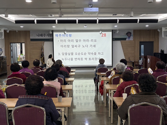 2025년의 마지막 민요교실 수업입니다! "해주아리랑, 신사철가, 난감하네, 들국화, 지경다짐" 5곡 복습해봤는데요! 오늘따라 어르신들의 집중력이 매우 높습니다! 12월에 수업이 없어 무척 아쉽지만, 2026년 새해에 신나는 마음으로 만나요!